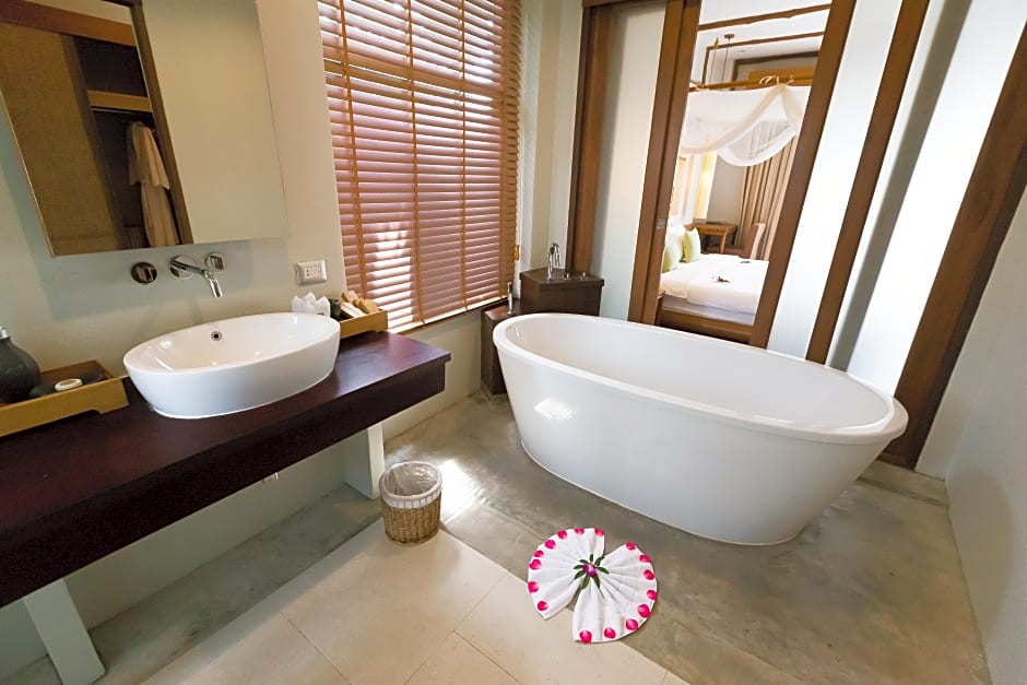 Spacious villa features direct pool access from the private balcony and a 42-inch flat-screen TV.